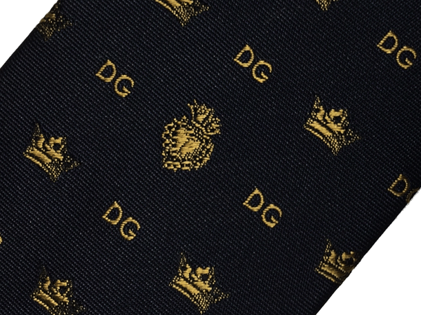 【仕様】黒系地にゴールド系のクレスト紋章とクラウン王冠とDGロゴ柄のデザイン、大剣裏地にロゴとクラウン王冠絵柄入り、※柄の合わせは個体により異なります。