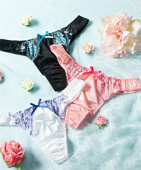 【期間限定 クーポン&ポイント10倍】 ショーツ パンティ(M-L) フェアリー 花柄 刺しゅう レース Tバックショーツ 3枚組 ニッセン 女性 下着 レディース セクシー Tバック セット