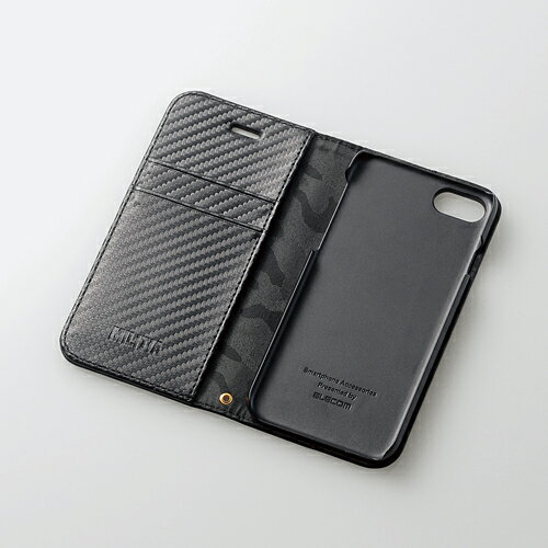 エレコム iPhone8/7用 手帳型カバー 横開きタイプ PM-A17MPLFCB01 ブラック